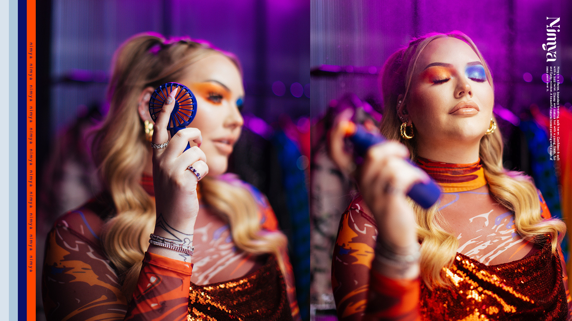 After 3.5 years of hard work on her products Nikkie needed the perfect branding to launch her brand, Nimya. From deep majestic blue to rich neon orange to a pop of icy blue, we picked vibrant colours for a remarkable endeavor. NikkieTutorials, one of the world's biggest beauty influencers, launched her make-up brand, Nimya.